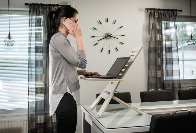 GetUpDesk Light on säädettävä tietokonepöytä. Mahdollistaa työskentelemisen seisten, kun ei ole korkeussäädettävää pöytää. GetUpDesk light on kehitetty kannettavan tietokoneen käyttäjälle vähentämään istumista ja mahdollistamaan vaihtelevuutta työasentoon. Se soveltuu käytettäväksi töissä, etätöissä, kotona, mökillä tai vaikka matkoilla. GetUpDesk on laminoitu valkoiseksi ja harmaaksi, joten voit itse valita mikä väri sopii sinulle. Tuote on täysin Suomessa valmistettu. Helppo koota ja käyttää, kompakti säilyttää. Säädettävissä 8 eri korkeuteen. Paino 4,5 kg, takuu 2 vuotta. M1 luokitus. Hyödyllisyysmallisuoja U20174005, tullikoodi 9403301900.